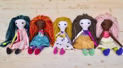 Handmade one of a kind fabric dolls.